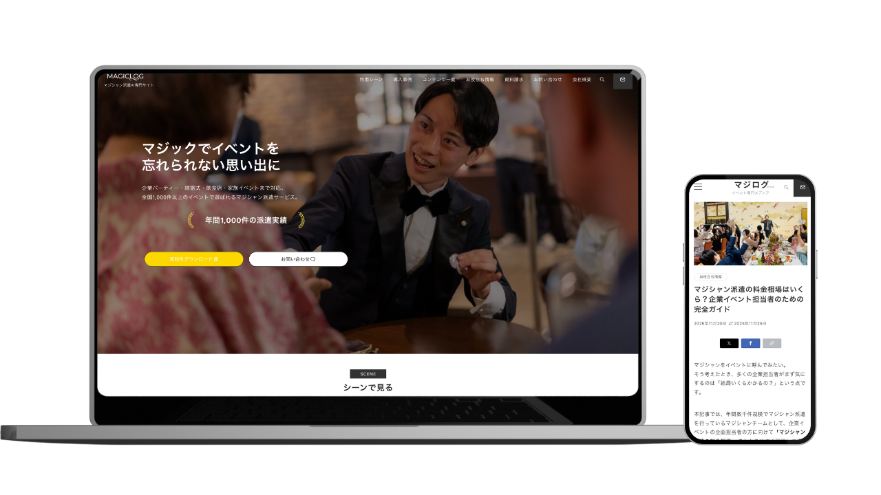 MAGICLOGは、出張マジシャン・マジシャン派遣を中心に、さまざまなシーンでマジックを提供してきたマジックの専門メディア/サービスです。