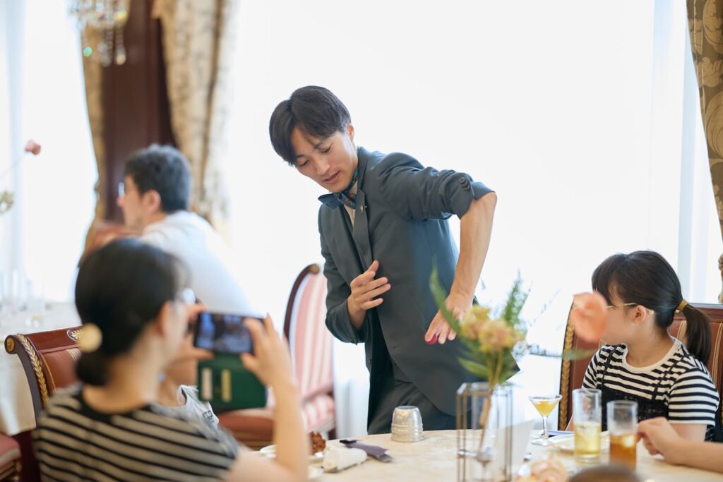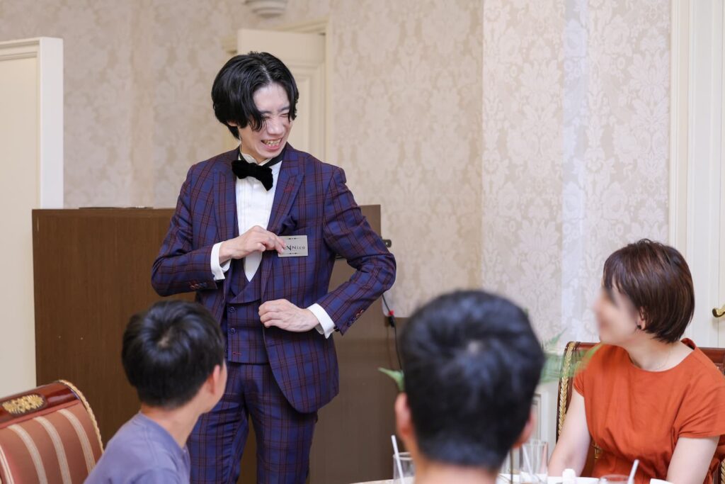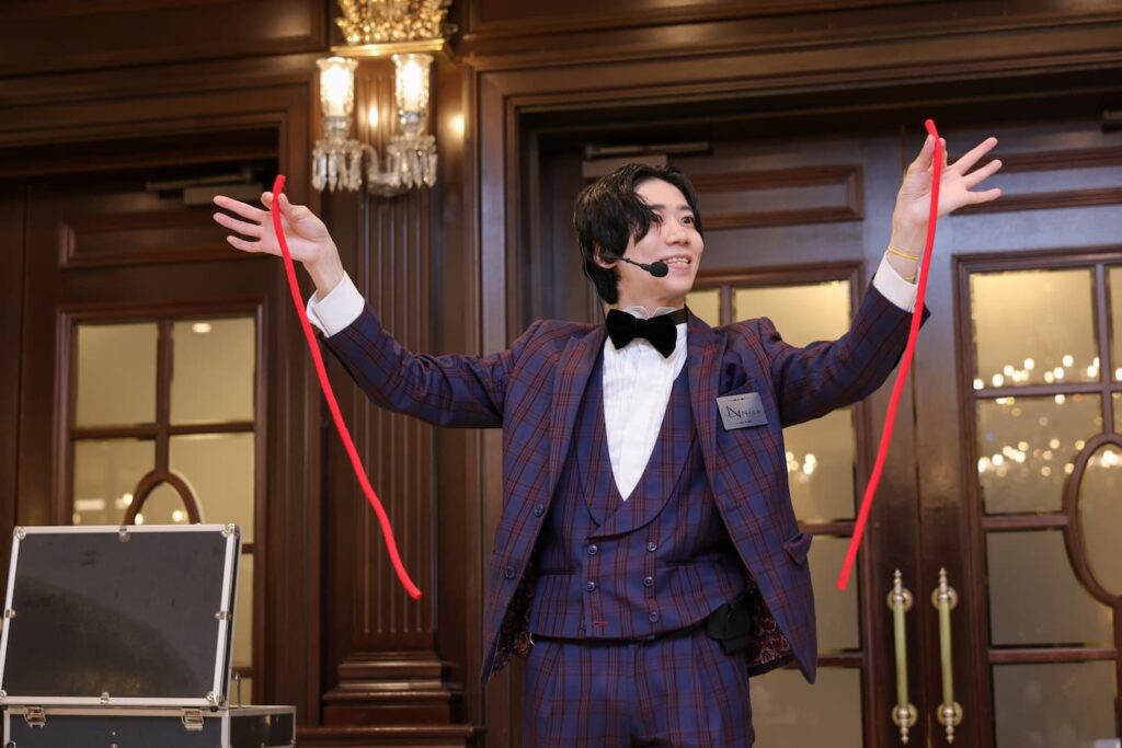 マジシャンが各卓を回り、ゲストの目の前でクロースアップマジックを披露。驚いた瞬間のリアクションが会場全体に広がりやすいため、笑顔や歓声が自然と連鎖していきます。