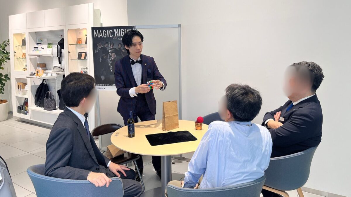 お客様の様子を見ながらテーブルを移動しつつマジックを披露。