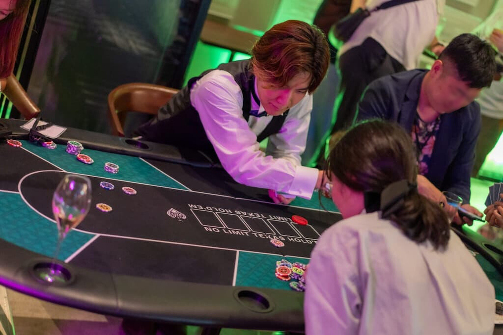 ポーカー、チップ、マジック。視覚的にも分かりやすい要素が揃っているため、会場に入った瞬間から「いつもと違う空気」をつくることができます。