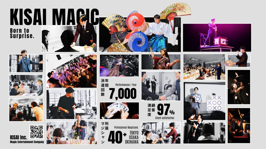 株式会社KISAIでは多数の若手〜中堅マジシャンが所属しており、“事務所型の安心感” と “個人依頼に近い価格帯” の両方を実現しやすい のも事実です。