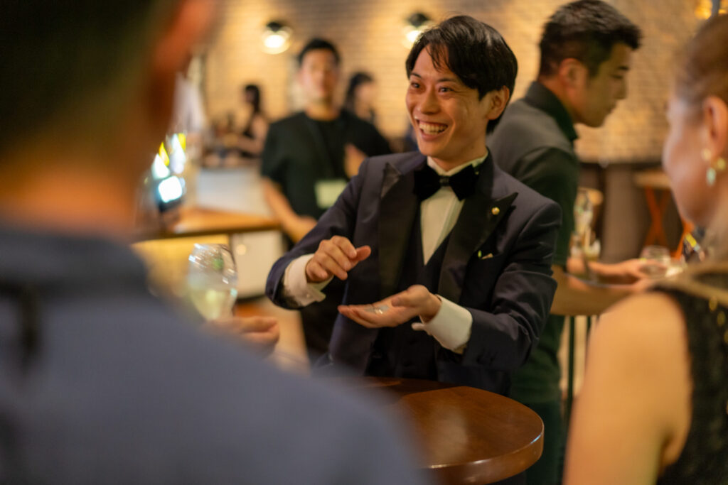 各テーブルを回りながら、空気を壊さず・進行を止めず・全員に体験を届けるマジック演出